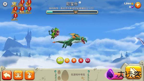 3.人(农民骑士等)、地精、人畜无害的鸟类、各类猛禽、猪牛羊、蜘蛛、各种飞龙等,不同尺寸的飞龙所能捕食的动物都不同,玩家可以通过金币解锁、培养、装扮自己的飞龙。