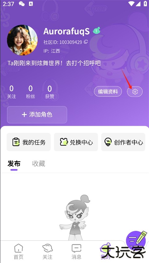 1、进入掌上炫舞软件首页,点击我的;
