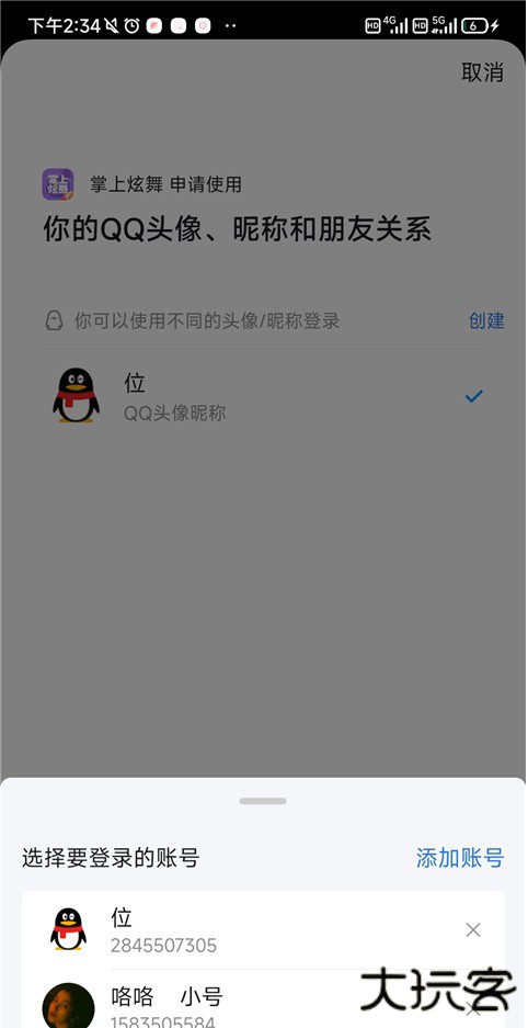 5、选择你想玩的qq账号就可以了。