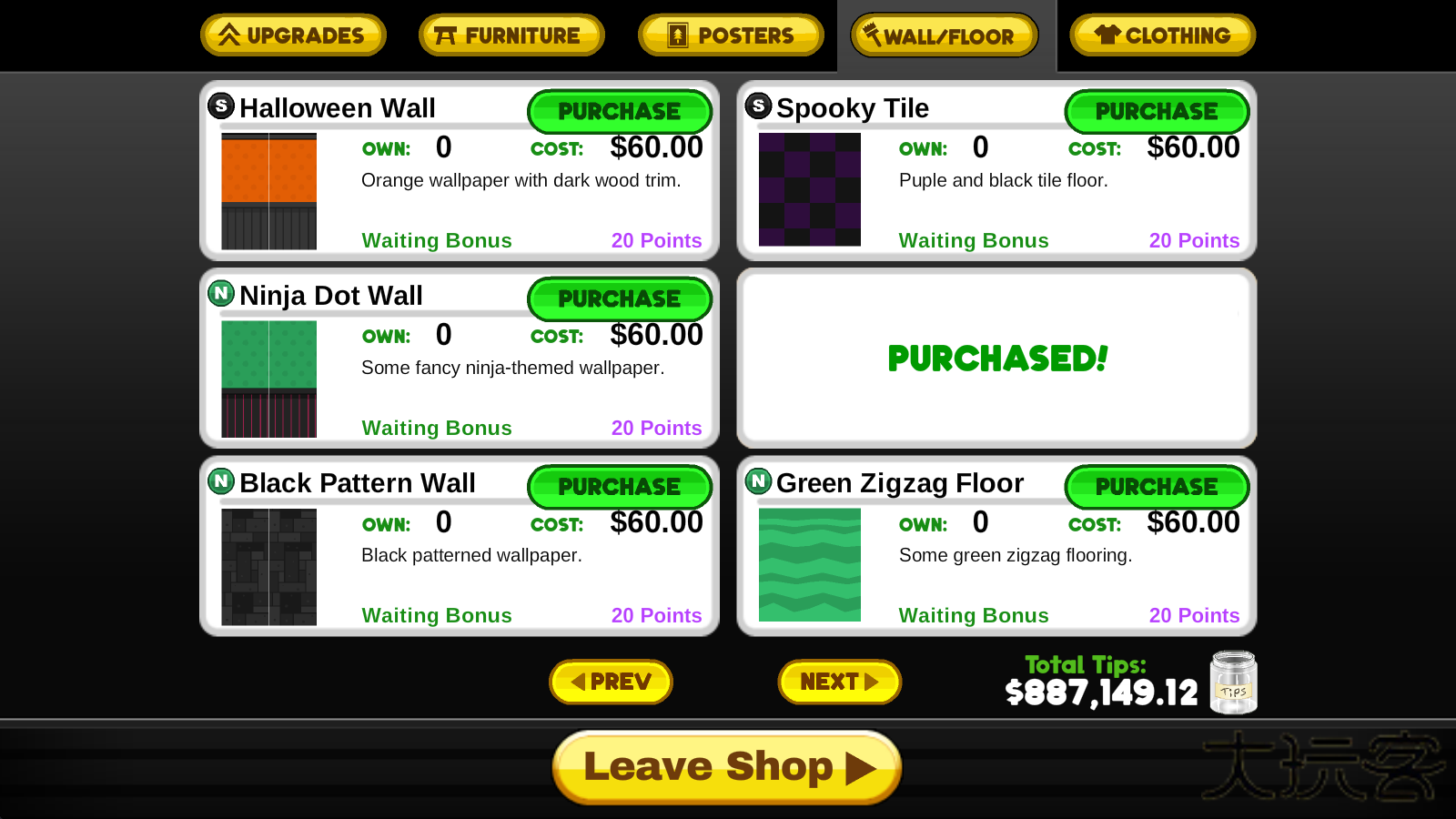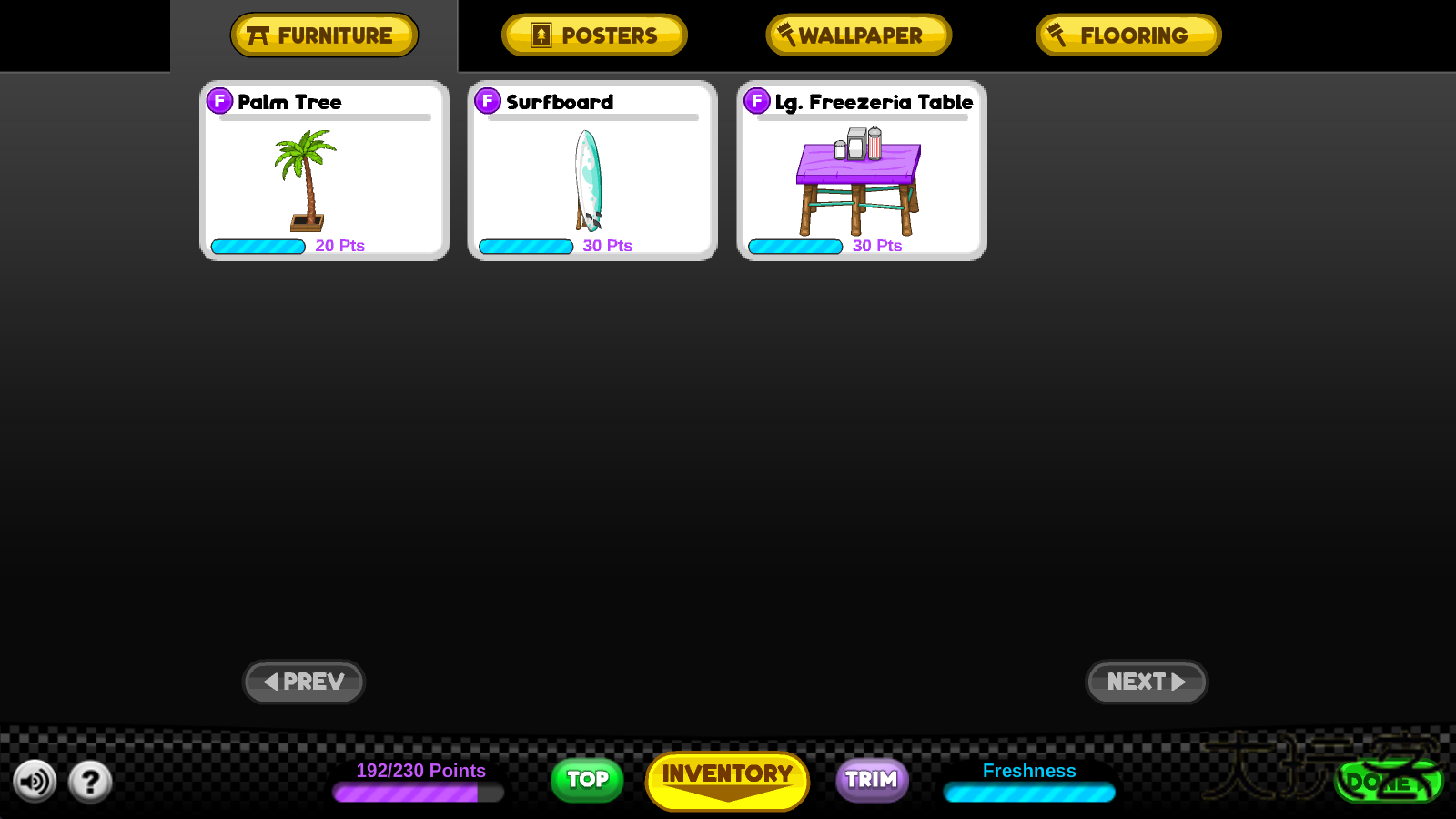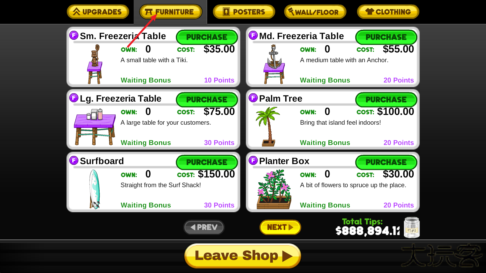 2、点击上方的FURNITURE即可进入家具界面,自由的挑选喜欢的购买。
