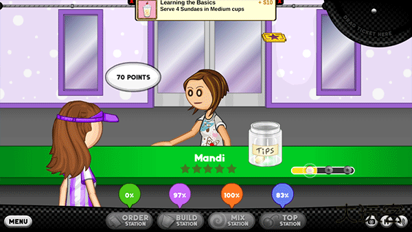 2.经典的时间管理玩法重磅回归,延续了《Papa's Burgeria》的核心乐趣,同时融入了制作冰淇淋的全新体验。