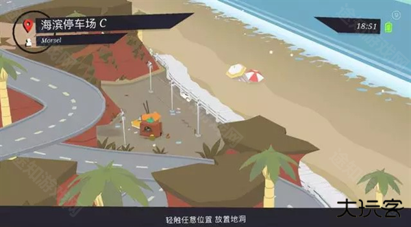 1、在甜甜圈都市游戏中很多小伙伴都在问烟花怎么过?其实烟花这个场景也就是海滨停车场C的关卡,这一关可以说是将烟花运用的淋漓尽致,首先我们点击任意位置放置地洞。