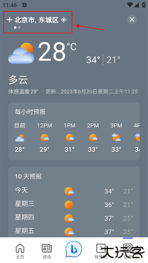 2、进入后点击左上角的城市定位