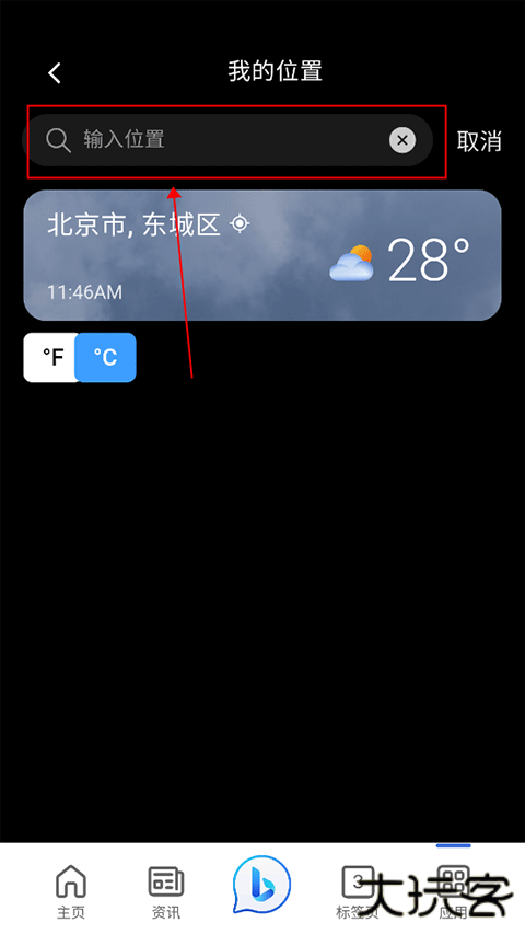 3、然后在搜索框中输入你所在的城市位置
