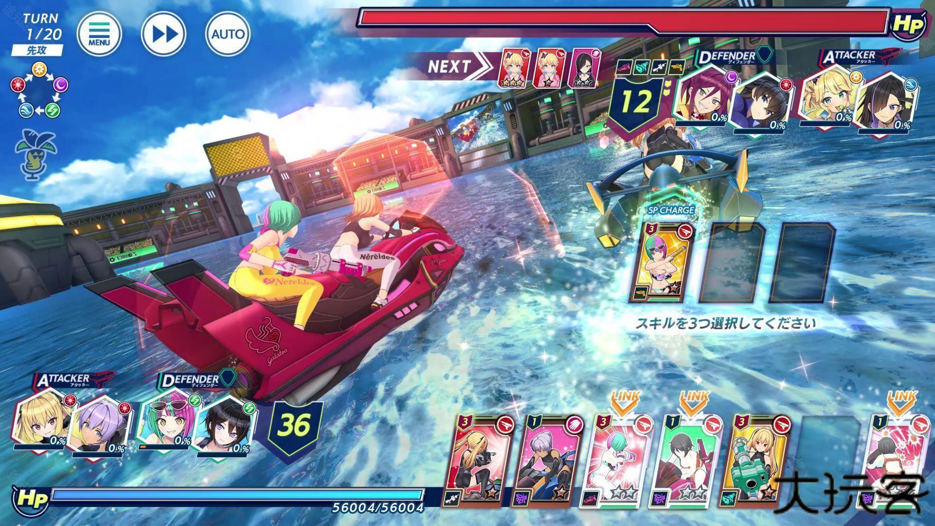 7、选好3张技能卡以后实行攻击指令,选择乘坐在相同机器上的海豚技能就会发动LINK效果,获得更高的使用性能,