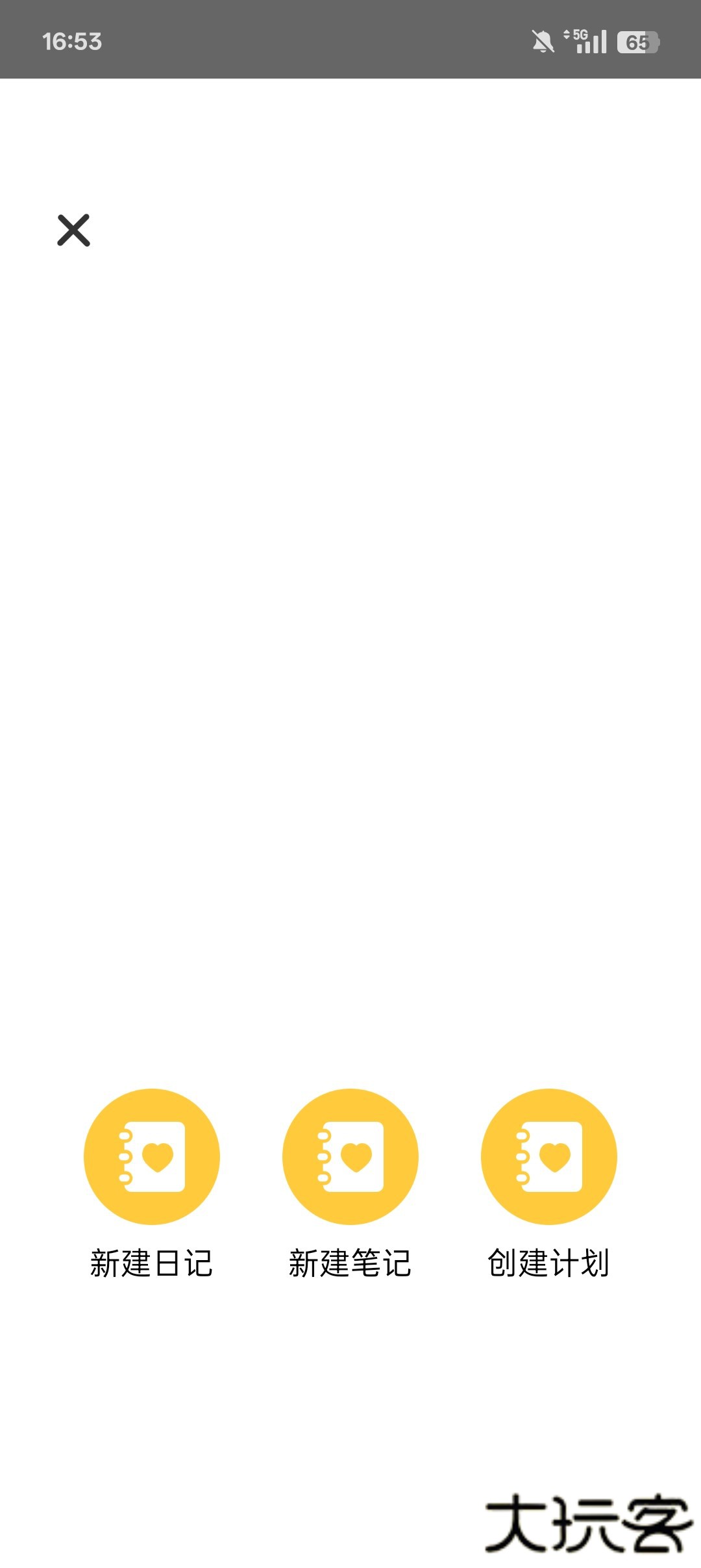 1、打开我的心情日记手机版,点击中间的加号。