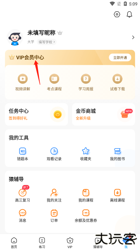 1、打开小猿答疑搜题软件,进入【我的】页面,点击会员中心。