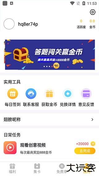 4、进入免费拿页面,你可以在这里利用福利猫内的货币兑换奖励