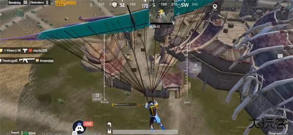 通过提早开伞,利用伞的漂浮性,先前倾提速,再后仰保持速度,前后摇摆增加飞行距离,能飞到人较少的区域,先行获取充足的物资和补给。