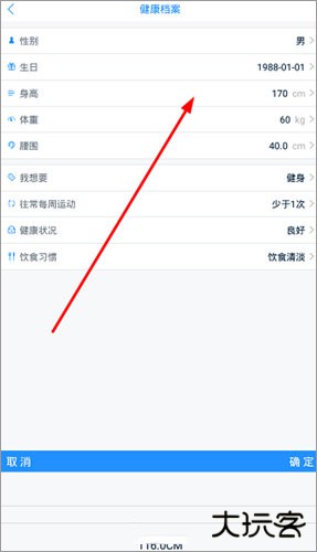 3、最后在“健康档案”界面,我们就可以点击“身高”选项进行身高的重新设置了。