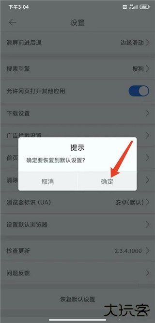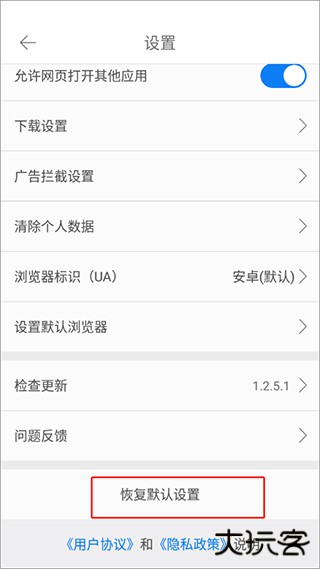 3、接着点击【恢复默认设置】功能。