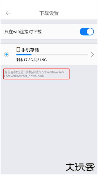 5、在“下载设置”页面中可以查看下载存储位置。