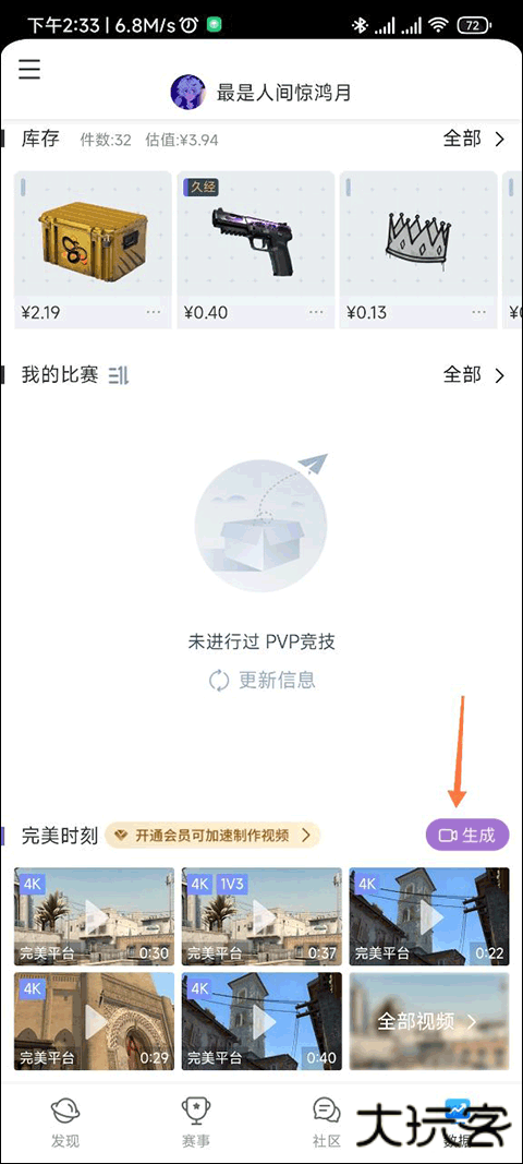 2.进入个人页面在下方完美时刻功能项中,点击右侧的生成选项