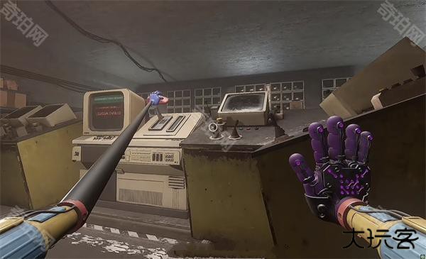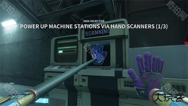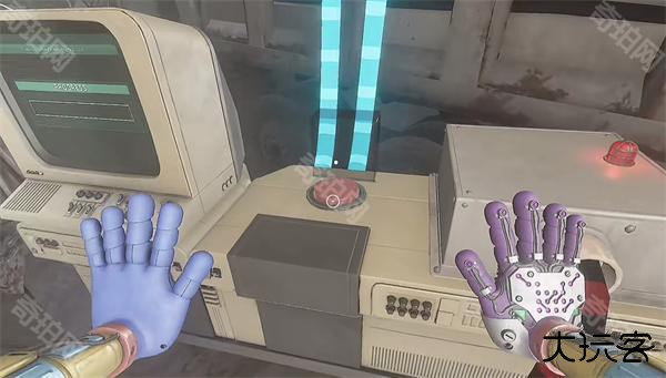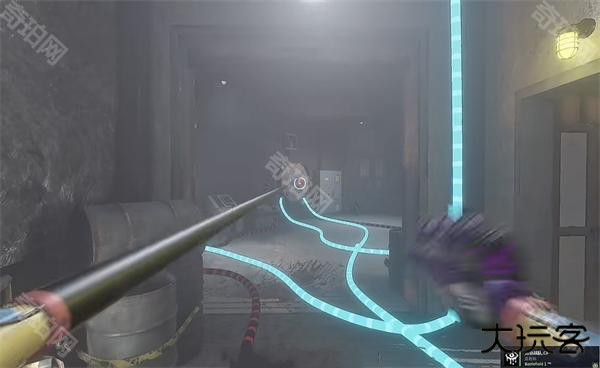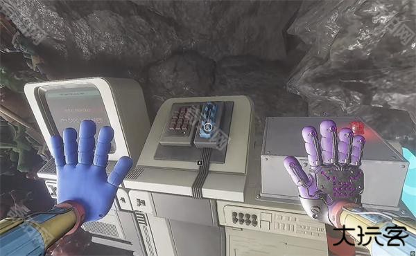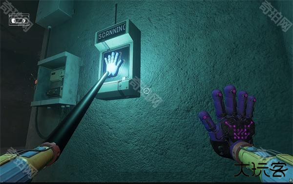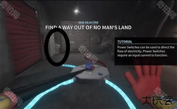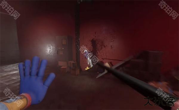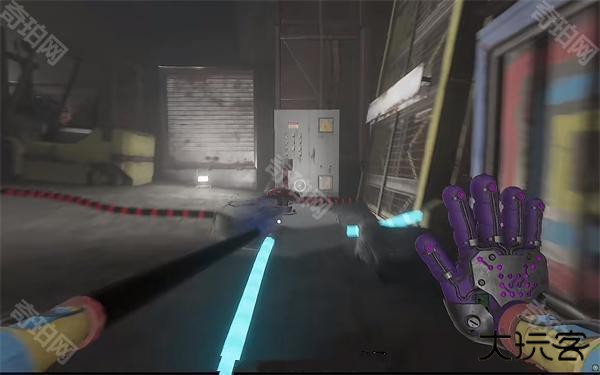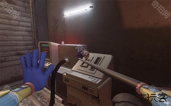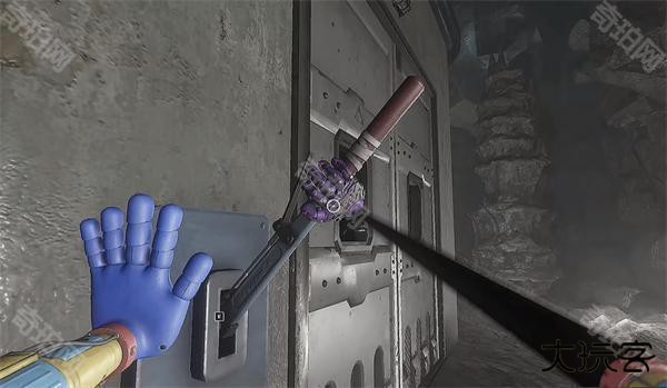 6、开门之后走里面还会有一个开关给他拉下来,往前走进去用蓝色手臂互动一下前面的开关,这里要触发三个开关才能有电流打通出口
