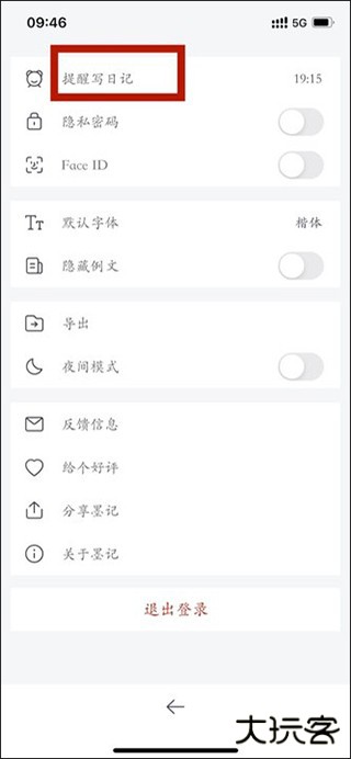 4、在提醒界面,点击“提醒我写日记”按钮,即可开启提醒功能。
