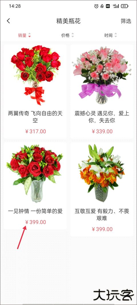 3、界面设计简洁直观,分类清晰,方便用户快速找到心仪的花束,轻松完成从挑选到下单的全过程