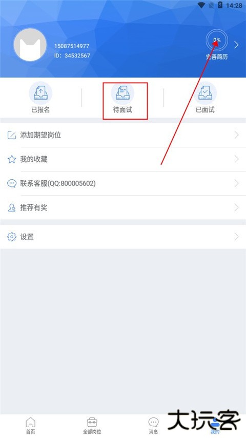 7、点击进入我的,用户可以在这里完善自己的简历,还可以查看自己的面试情况。