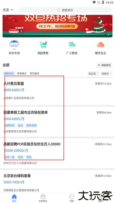 3、招聘猫是基于LBS进行了附近工作的推荐,离家近,让你回家更方便。
