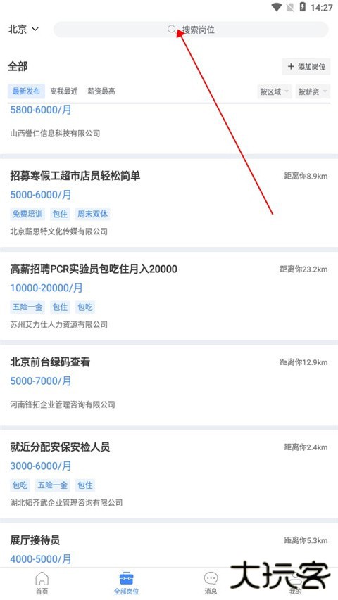 2、拥有搜索功能,用户可以通过各种关键词来搜索自己感兴趣的岗位信息。