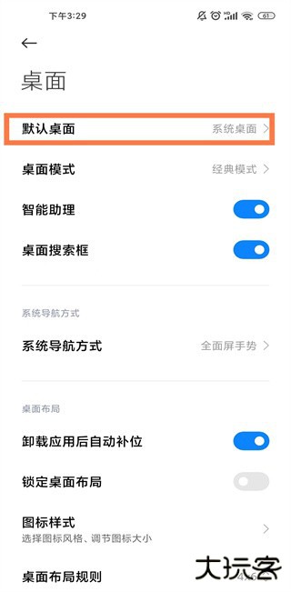 2、点击进入【默认桌面】。