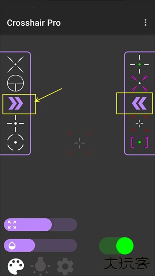 3、当然软件内的准星类型远不止展示的这些,可以点击下图所示的箭头按钮查看更多的准星类型。