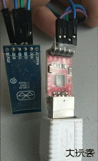 1、首先,我们准备好一个USB转TTL工具,将其和蓝牙串口交叉连接,即USB转TTL的RX接口连接蓝牙串口的TX接口,TX接口连接RX接口,并连接至PC。