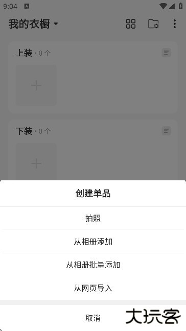 3、进入到软件的【衣橱】首页,如图所示;这里能通过点击【+】来添加上装,夏装,鞋子包包等服饰信息。