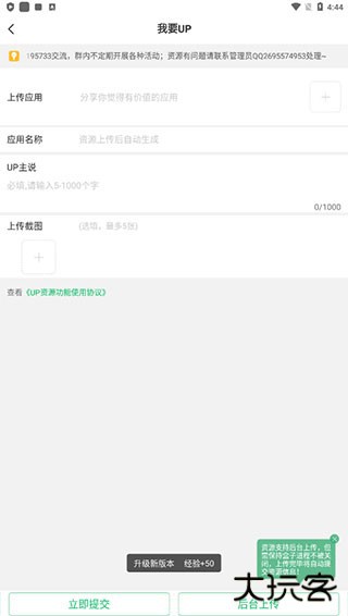 3、应用资源支持后台上传,但是需要保持盒子进程不关闭。上传后,资源信息会自动提交