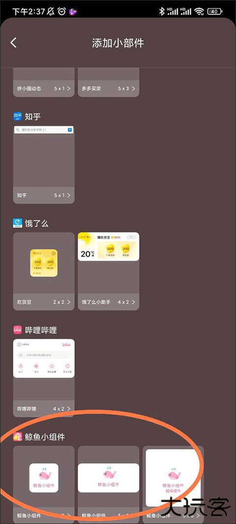 3、可以看到所有已添加的小号小组件,选择你需要的样式即可。