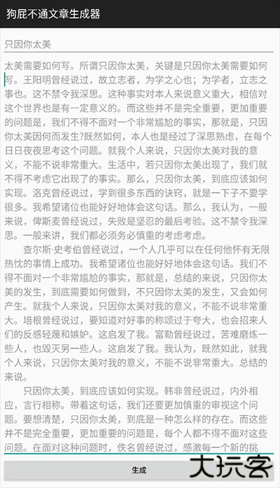 狗屁不通文章生成器写论文通过预设语料与模板算法生成文章内容。用户可自定义关键词,自动生成相关主题段落。狗屁不通文章生成器写论文app下载里支持选择不同写作风格,如议论文、说明文等。狗屁不通文章生成器生成内容具备语法完整性,适合展示或二次编辑!