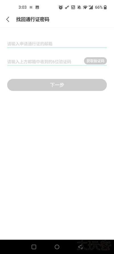 4、输入之前注册的通行证账号的邮箱,并接收验证码