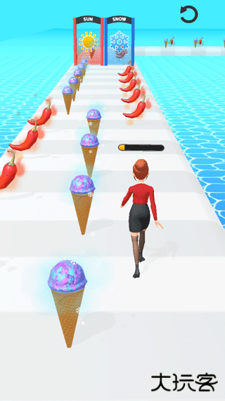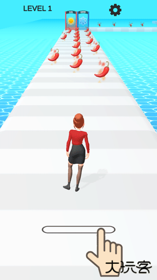 2、核心玩法是收集辣椒,玩家可以在赛道上自由奔跑,收集不同颜色和数量的辣椒。