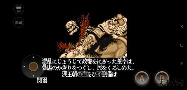 第五关:关底淳于导(日本人竟写成淳干导,KAO!)如果你是一条命打到这里的话,那也就告别了社会主义初级阶段了,就不用我多废话了。我要说的只有两点:第一,路上有马,最好骑马打;第二,关底画面中最上方有两处有石头,在稍微靠下的石头处站好,小导来的时候两拳一投,让他背靠石头动弹不得吧。然后就随你怎么收拾他了,哈哈,我经常是连续大招,爽之又爽。过关分数约为115万(我最高曾120万)