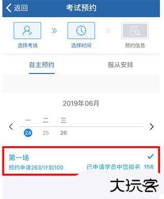 5、选中日期后查看申请人数和计划考试人数,没问题点击“预约”,预约后手机会收到验证码,将验证码填写后预约就成功了,显示“受理中”,在考试前3-5天会通知你成功或失败。