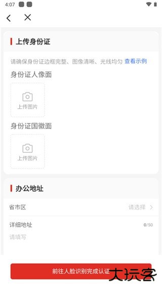 4、上传身份信息,然后点击前往人脸识别认证,认证完成后即可完成注册