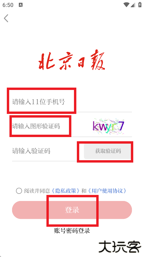 2、输入手机号、图形验证码,获取手机号验证码进行登录。