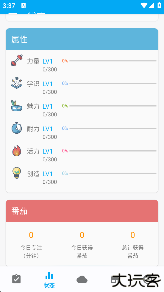 1、属性系统:将任务划分为力量、学识、魅力等六大属性,完成对应任务可提升属性经验值及等级。
