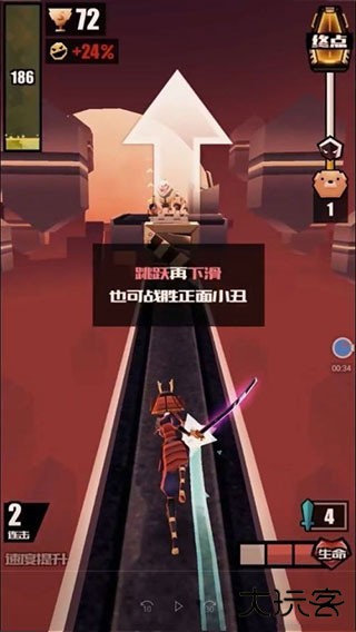 3、想与小丑正面交锋?向上跳跃再向下滑动即可战胜正面小丑