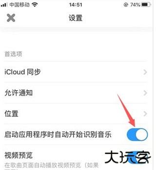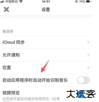 3、打开后找到启动应用程序时自动开始识别音乐