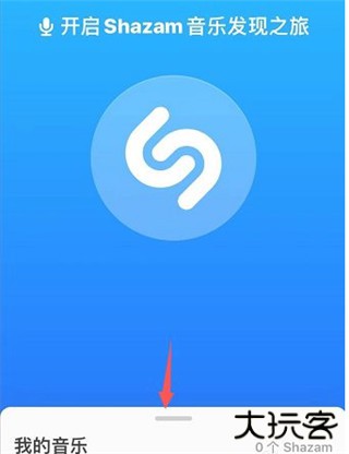 1、打开shazam识别音乐软件之后点击首页的大图标