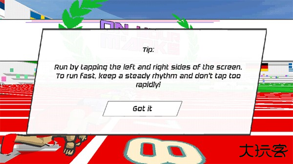 3、左右开弓,节奏掌控!人物跑动需要你不停地点击屏幕左边或右边,想跑得快,两只手(或手指)得协调好,找个舒服的点击节奏按下去就行。