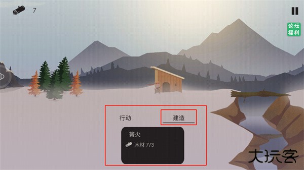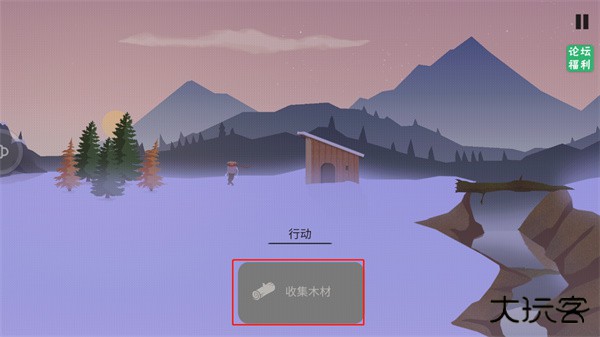 5、点击行动控制人物去收集木材;