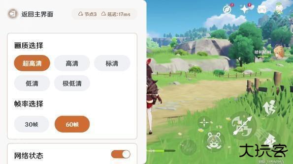 4、初次进入云原神默认画质显示超高清和60帧,可以修改;