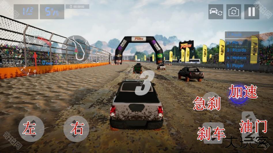 2、游戏有生存模式和挑战模式。你可以选择你最喜欢的赛车风格,在尘土飞扬的道路上比赛。