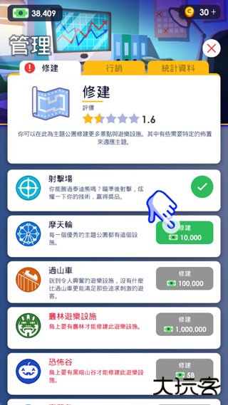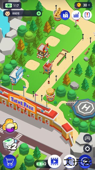 1、建立主题乐园基础:初始阶段管理小型主题公园,逐步扩大规模。解锁新地块,开发包含过山车、摩天轮、圆木水道及恐怖屋等设施的综合性娱乐区域。