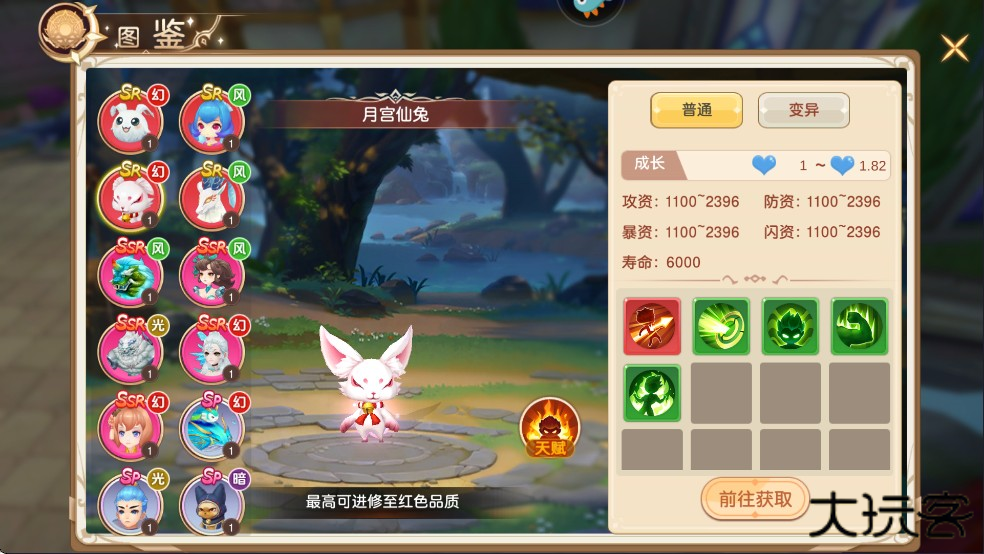 被动技能:宠物出战每10秒恢复自身血量上限的10%,额外回复25000血星