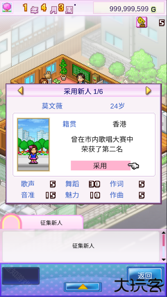 百万乐曲物语是一款培养明星的模拟经营游戏,玩家在游戏中将成为一家音乐公司的董事长,通过培养歌手来提升公司的知名度,赚取更多的金钱。游戏中玩家将建立一个音乐公司,你需要确定公司主要经营的方向,挖掘培养新人,给公司带来效益,目标是百万乐曲大奖,游戏非常有趣。通过不断经营和优化公司的运营,玩家需要平衡艺人的发展和公司的资源,逐步扩大规模,提升公司的影响力。随着艺人事业的成功,公司也将迎来更大的利润和机会,玩家可以感受到从零开始打造娱乐帝国的乐趣。