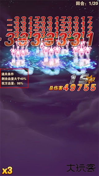 关卡界面对通关目标有明确提示(如 “击杀敌方全体”、“队伍血量高于 40%”、“6 回合内结束战斗” 等)。请务必根据目标要求合理调整神将站位与策略。战斗界面左侧可实时查看目标达成进度。