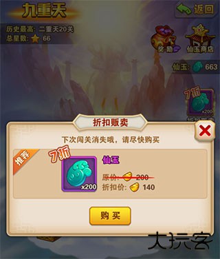 首次成功通关某一重天的所有关卡,可获得内含橙色宝物碎片的特大宝箱。
