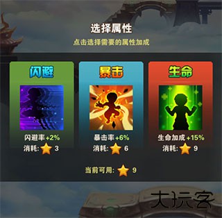 通关所获星级评价用于兑换该阶段提供的增益效果。所需星级越高的增益效果,其属性加成幅度越大。